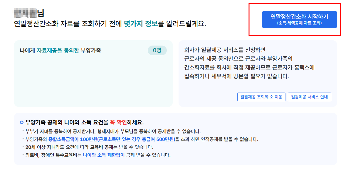 3.아래사진처럼 빨간박스의 '연말간소화하기' 버튼이 나옵니다 클릭 후